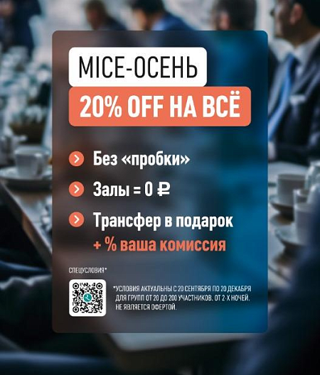 *Распространяется на индивидуальные бронирования. Акция активна на праздничные заезды. Действует для агентств на условиях 10% комиссии. Не пересекается с другими СП отеля.