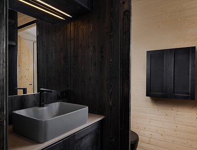 Стильный дом с современным лаконичным дизайном в еловом лесу! Красивый вид из панорамного окна и все условия, чтобы перезагрузиться от городских проблем!