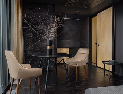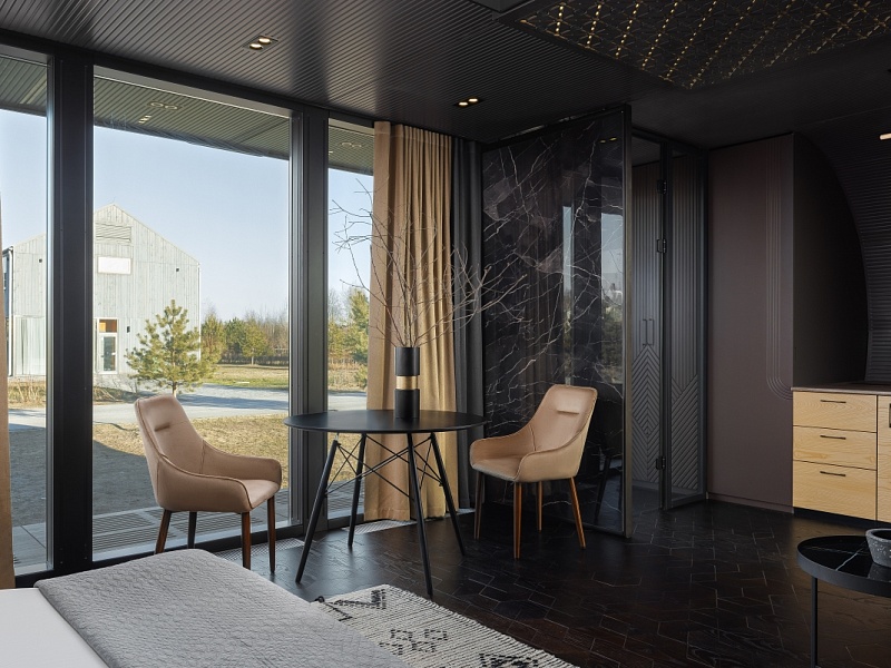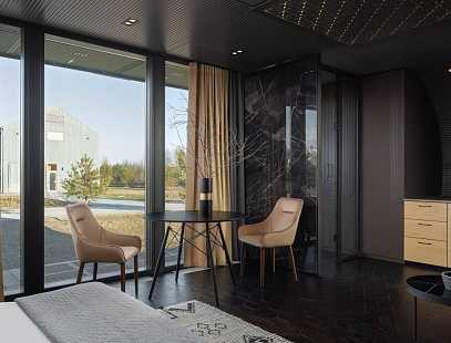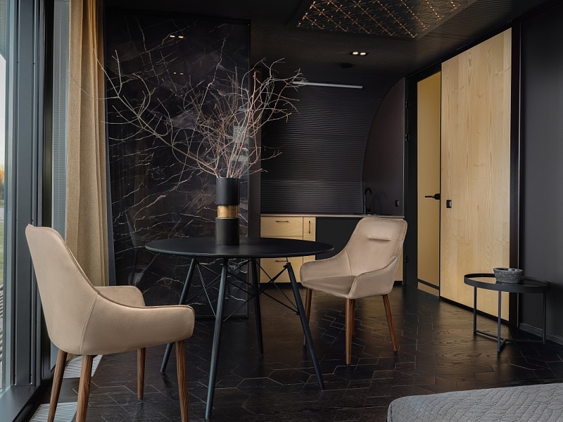 Роскошный бутик-модуль с панорамными окнами на основной территории отеля, всего пара минут ходьбы до основного корпуса. Здесь сочетается все: природное окружение, стильный интерьер и все необходимое для комфортного отдыха. А изюминкой этого дома стало окно прямо в крыше над кроватью, идеально, чтобы любоваться звездами!