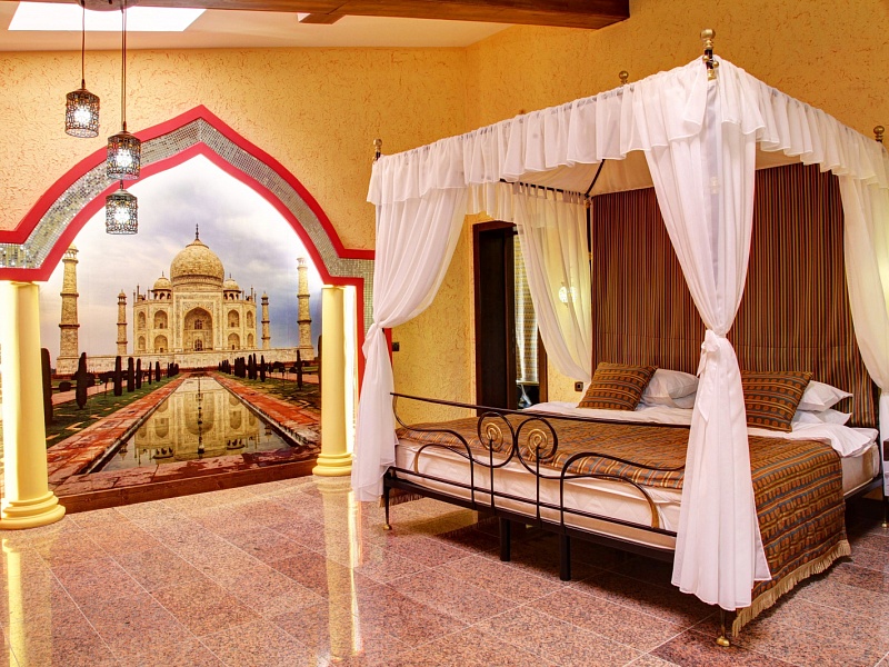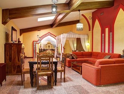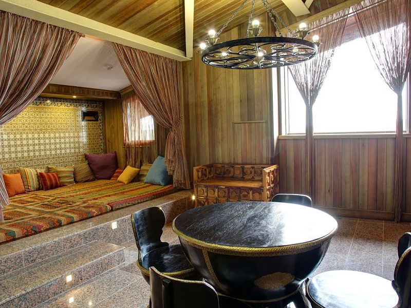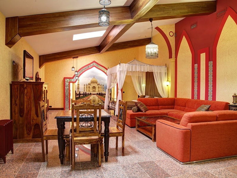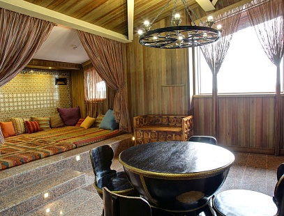 Однокомнатный просторный номер с хаммамом и джакузи, располагается на закрытом 5 этаже. Сказочные восточные интерьеры номера напоминают о 1000 и одной ночи. Царственное ложе - самое важное украшение этого номера. В этих великолепных покоях влюбленные смогут открыть для себя волшебство хаммама и ароматных водных процедур.