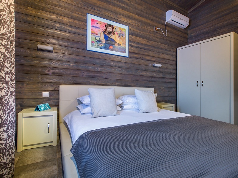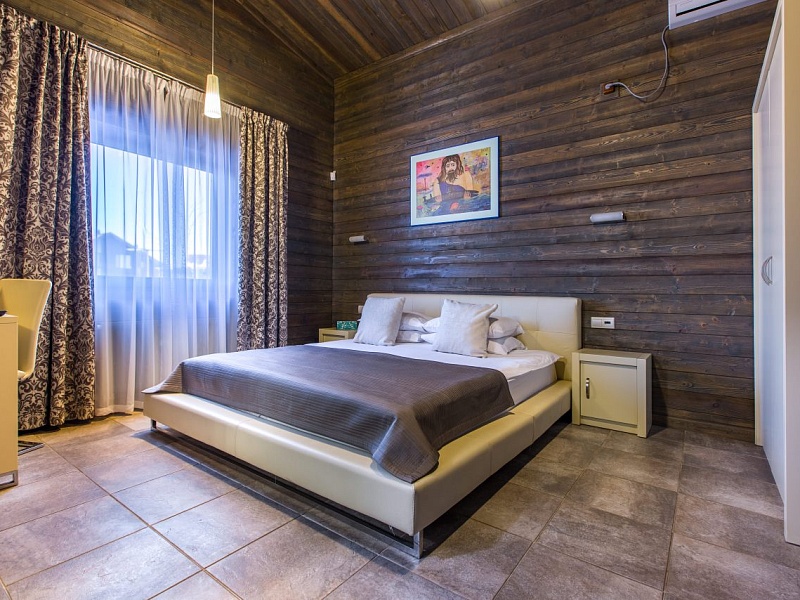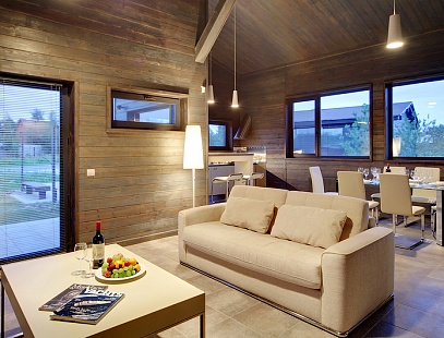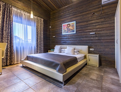 Трехкомнатный коттедж с мансардой в псевдофинском стиле с характерным обилием натуральных материалов во внешней и внутренней отделках с большой гостиной с панорамными окнами во всю стену, которые в теплое время года можно открыть, впустив окружающую природу внутрь дома. Каждая деталь интерьера подчеркивает особый уют дома. По небольшой лестнице из гостиной можно пасть в уютную мансарду, где могут разместиться приглашенные гости или дети. Коттедж отлично подойдет для семейного отдыха и отдыха компанией!